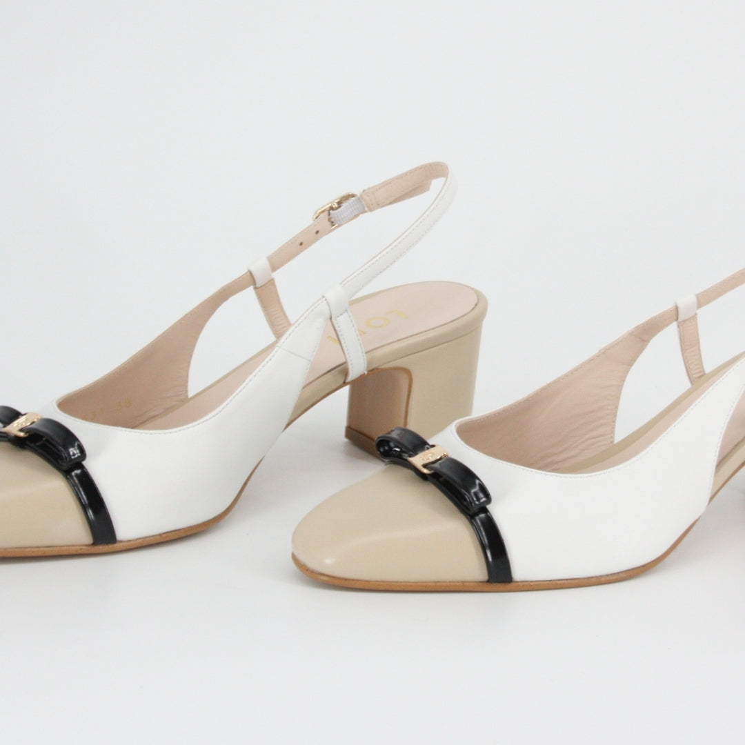 These timeless classics from Lodi are handcrafted in Spain in the finest leathers. The combination of black and gold adds a touch of pure sophistication to these little beauties. Resting on a 50mm heel for extra comfort. We love the bow detail across the front.